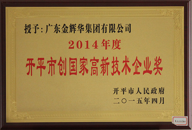熱烈慶祝我公司榮獲開(kāi)平市創(chuàng)國(guó)家高新技術(shù)企業(yè)獎(jiǎng)