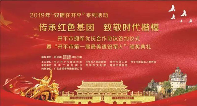 記我司贊助的開平市第一屆“最美退役軍人”評選活動頒獎儀式 2019年7月26日上午開平市第一屆“最美退役軍人”頒獎儀式在開平市東匯城隆重舉行,并展示了開平10位退役軍人的優秀事跡:他們有的參與三大戰役解放中國、有的橫渡鴨綠江、鏖戰上甘嶺、...