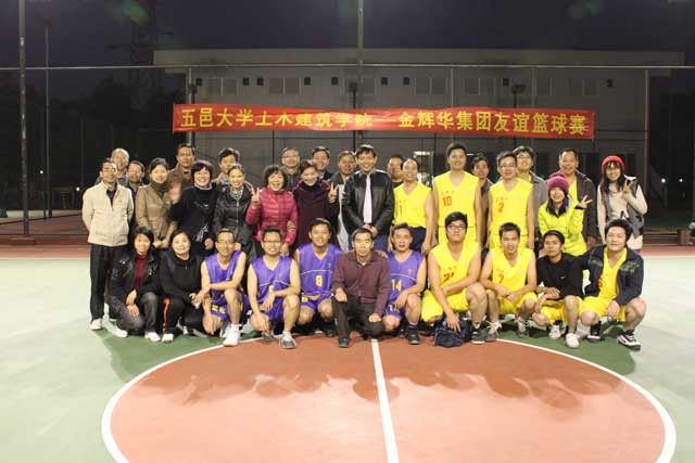 座談會上,集團黨委張解矛書記介紹了企業黨建工作,并通過幻燈片播放向土建學院教職工展示了集團公司黨工青婦開展的一系列豐富多彩的活動;會后張書記和工會主席陳維民等領導帶領土建學院教職工們參觀了集團公司的榮譽室、活動室、在建工程:金輝華集團綜合大廈項目部以及由集團自主開發的天富豪庭住宅小區;最后土建學院與我集團公司舉行了5人友誼籃球賽。
