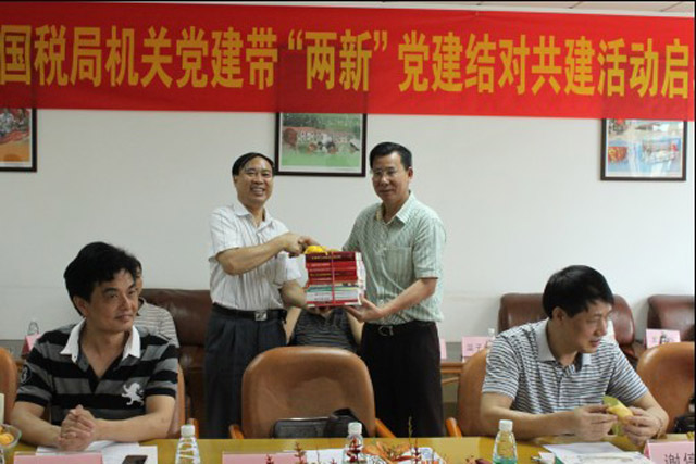 圖為江門市國稅局黨委向我集團黨委贈送黨建書籍