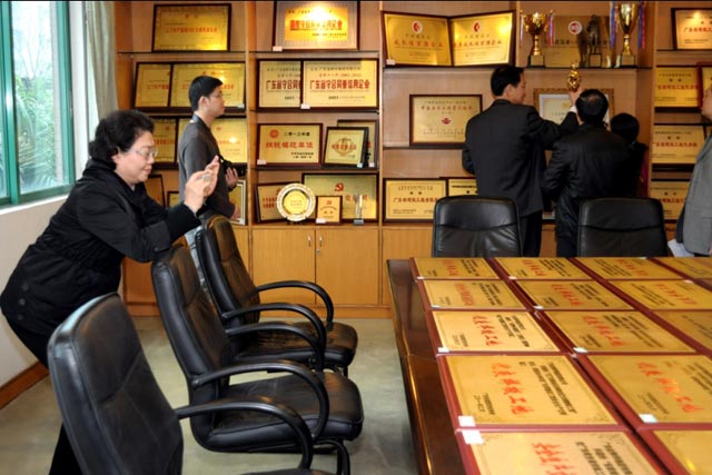 圖為省督導組組長南方廣播影視傳媒集團原黨委書記白玲同志正在對我司的榮譽證書進行拍照作為調研材料。